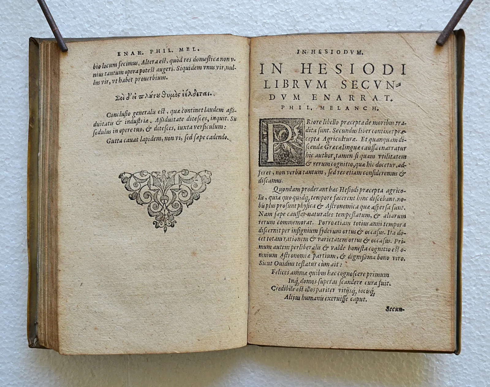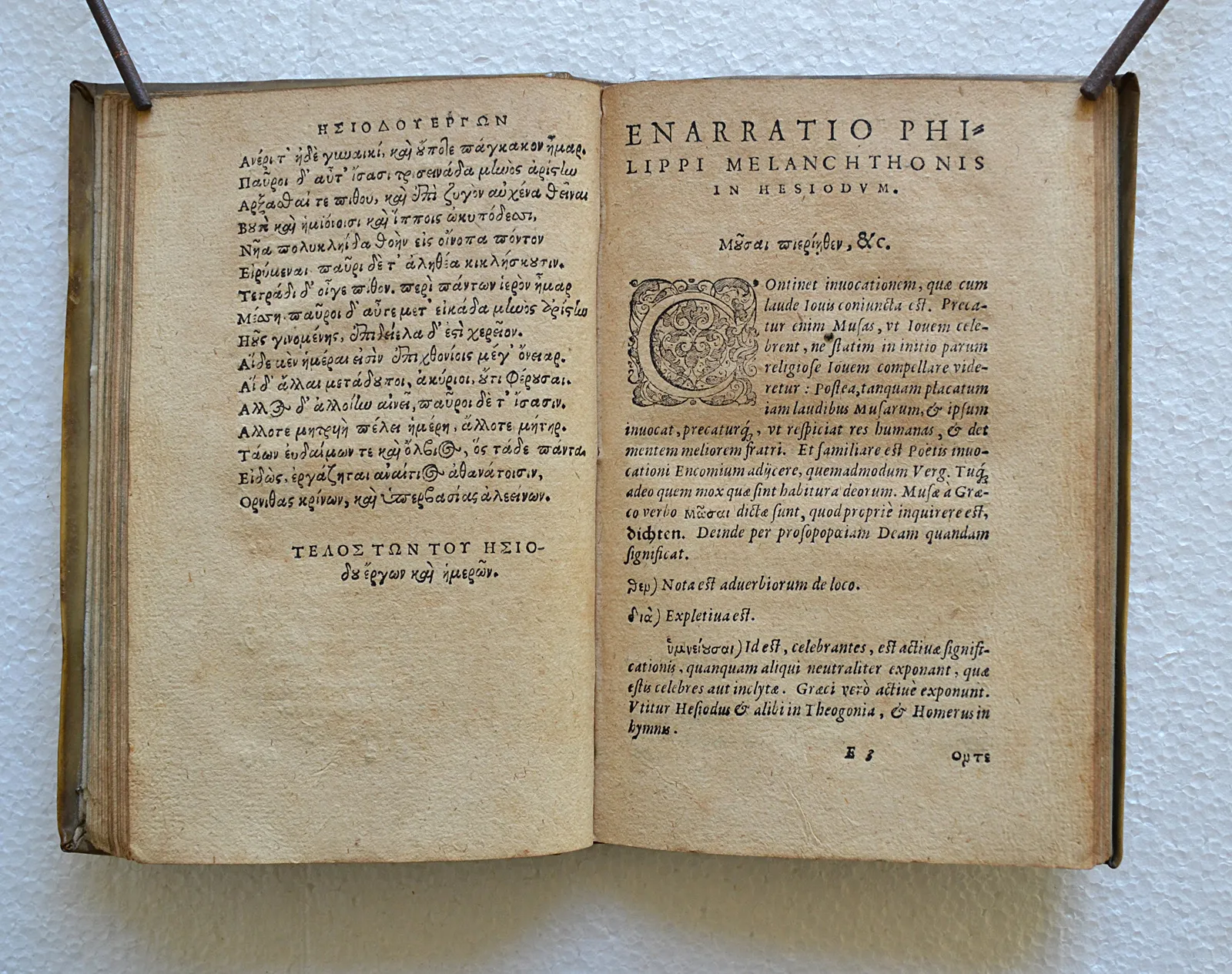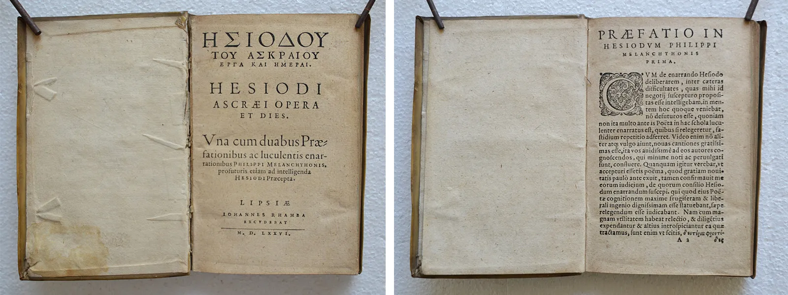 Rarissime édition du XVI° siècle des œuvres d’Hésiode avec une préface du disciple de Luther, Philippe Mélanchthon (1497-1560), dans son très beau vélin d’origine.
