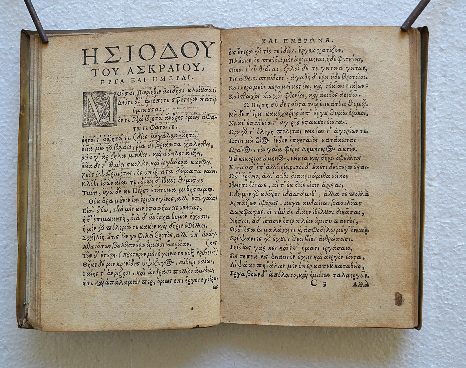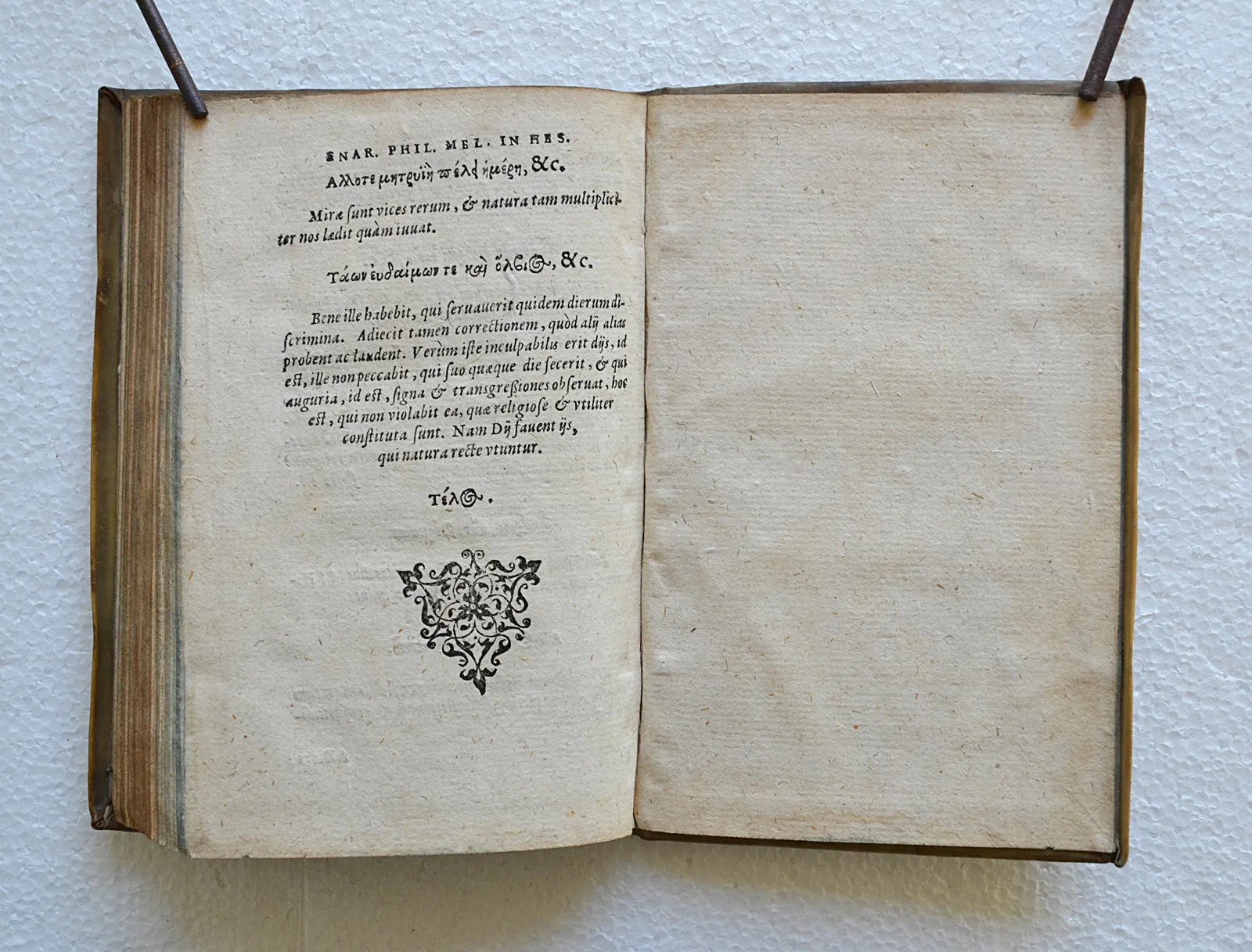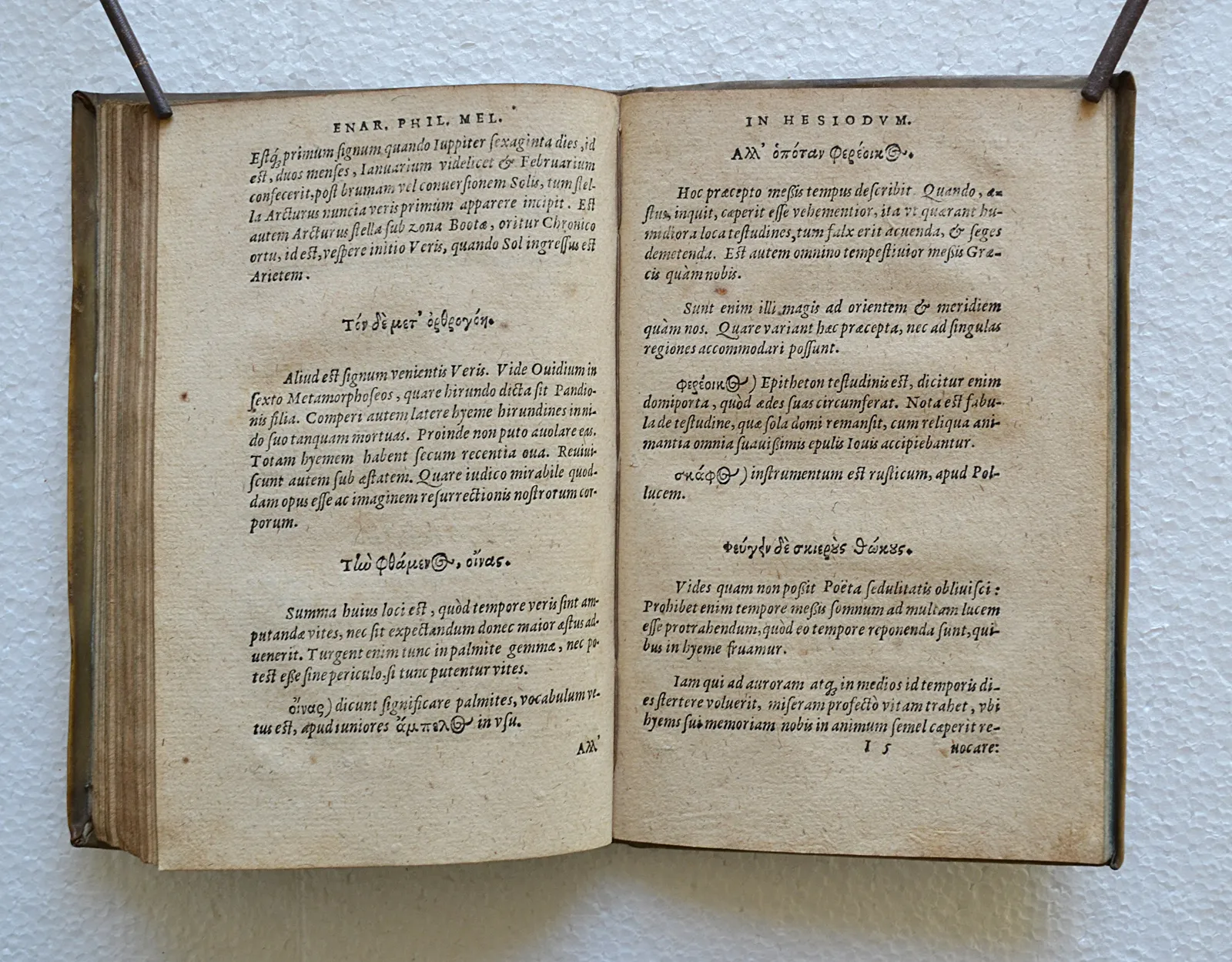 Rarissime édition du XVI° siècle des œuvres d’Hésiode avec une préface du disciple de Luther, Philippe Mélanchthon (1497-1560), dans son très beau vélin d’origine.
