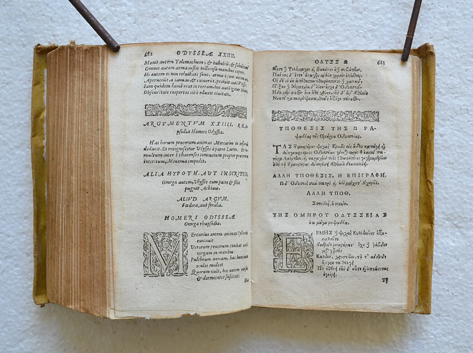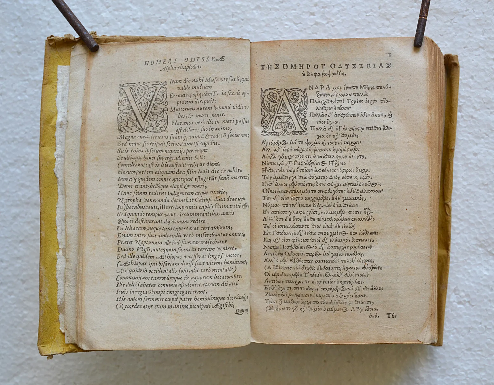 Rarissime édition du XVIe siècle de l'Odyssée en latin et grec, imprimée à Genève par Eustache Vignon en 1574, conservée dans son vélin d'origine.