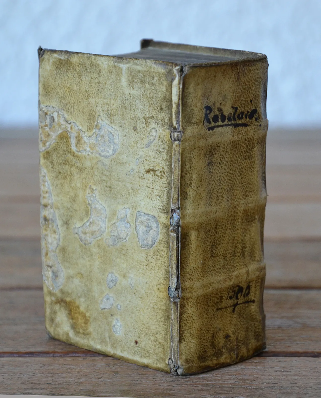 Bel exemplaire, dans son vélin d’origine, de cette fameuse et rarissime édition protestante des œuvres de Rabelais, contenant l’ensemble de l’œuvre de l’auteur.