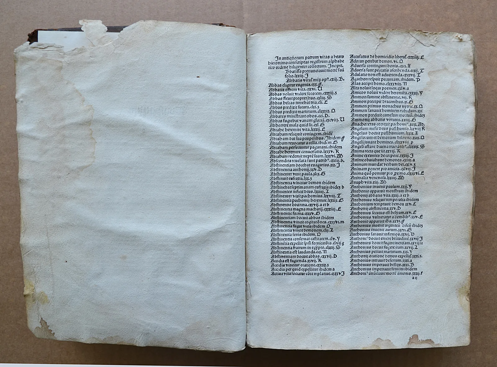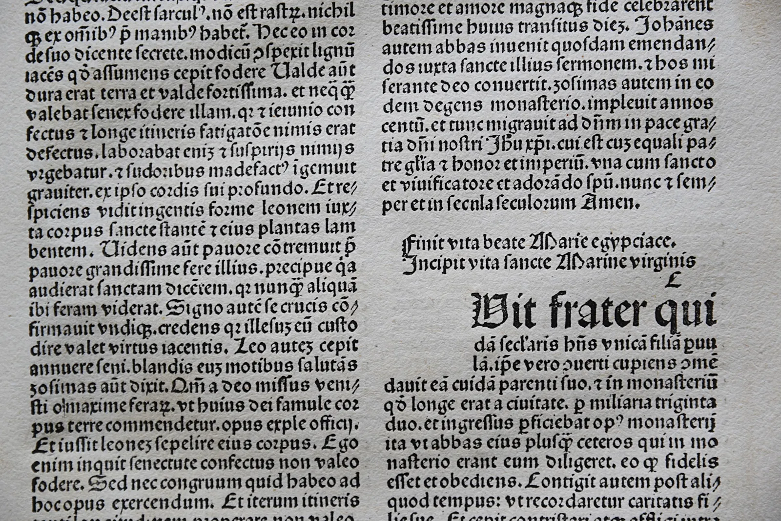 Perte de papier à la fin du dernier feuillet, il manque deux mots sur la dernière ligne [vitas appellatum] et la marque de l’imprimeur.