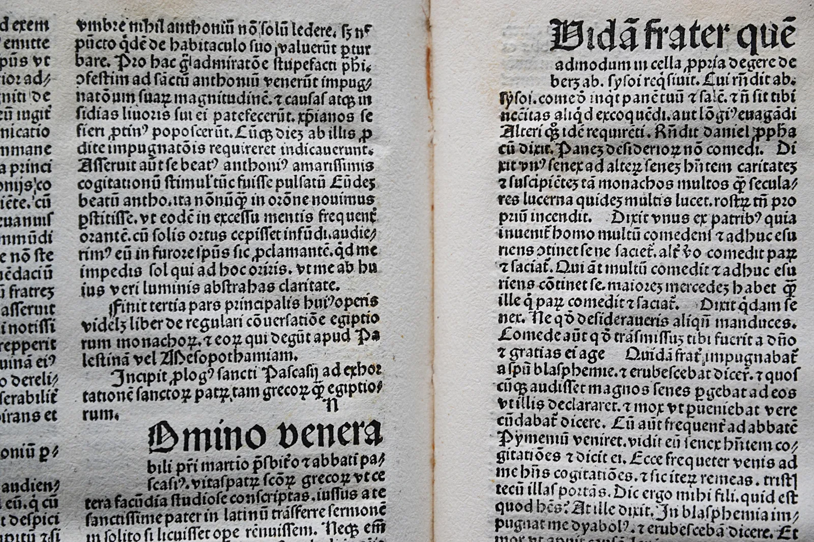 Les Vies des Pères (Vitas Patrum) est un recueil d’écrits hagiographiques, attribués à Saint Jérôme, sur les Pères et Mères du désert du christianisme primitif. Il s’agit de l’épopée du monachisme (état et mode de vie de personnes qui ont prononcé des vœux religieux et font partie d’un ordre dont les membres vivent sous une règle commune, séparés du monde) en Égypte et en Syrie.